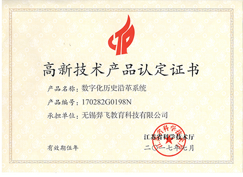 數(shù)字化歷史沿革系統(tǒng)高品證書(2017.7-2022.7)