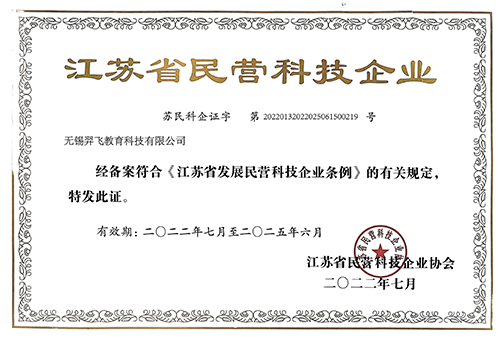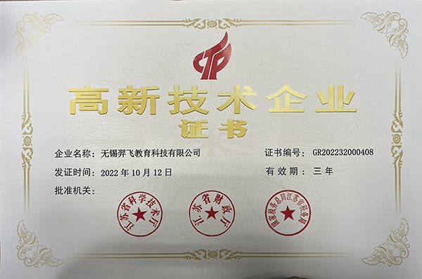 無錫羿飛教育高新技術(shù)企業(yè)證書(2022.10.12-2025.10.11)