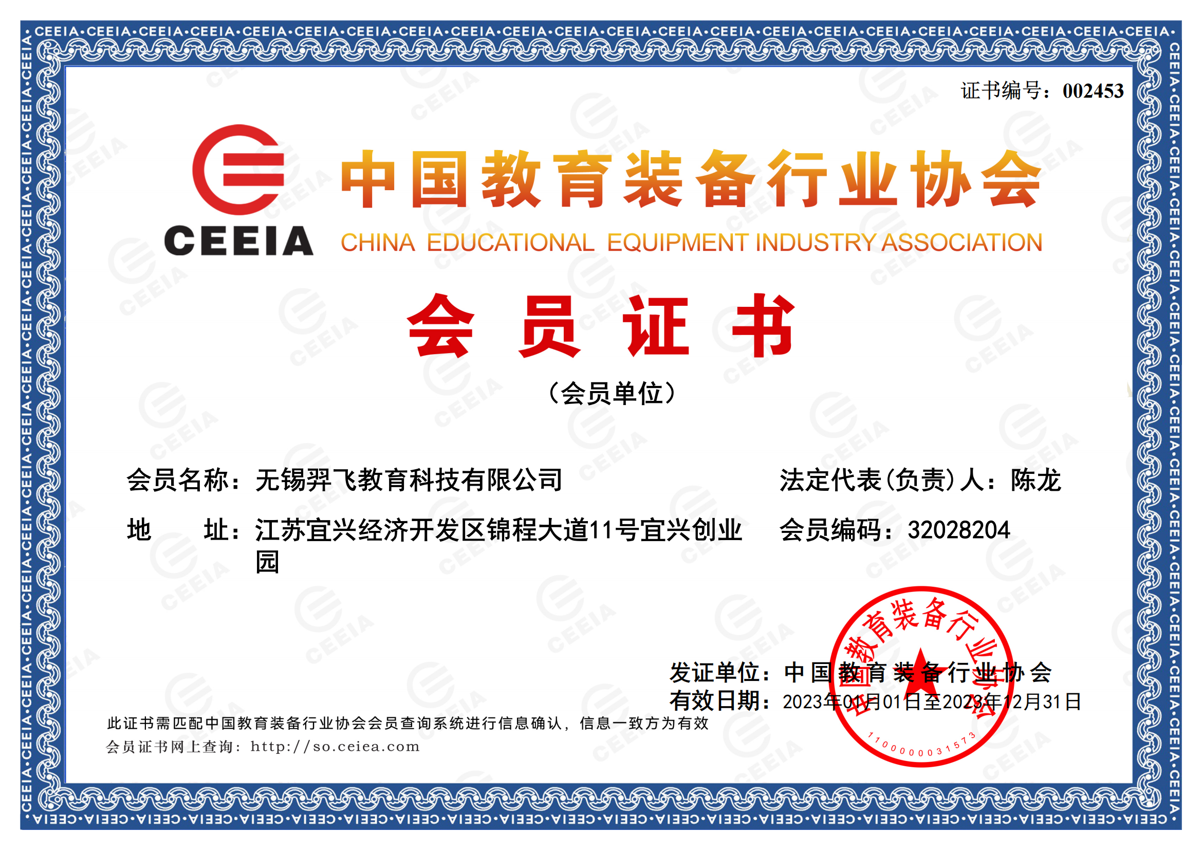 中國教育裝備行業(yè)協(xié)會(huì)會(huì)員證書(2023.1.1-2023.12.31)