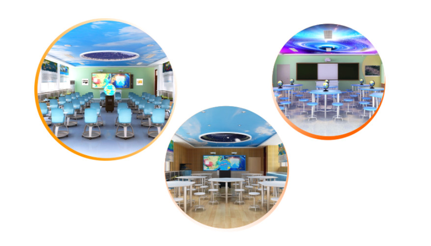 數(shù)字穹頂作為全數(shù)字化地理專用教室的天文演示功能而研發(fā)設(shè)計(jì),可以有效將學(xué)生的視角由地球范疇,轉(zhuǎn)向太空乃至整個(gè)宇宙,將地理知識(shí)與天文教學(xué)有效的整合,使學(xué)生了解地月系、地球與太陽(yáng)系、地球與銀河系之間的關(guān)系,了解宇宙的演變過(guò)程,了解恒星、行星的形成及演變過(guò)程,穹幕影片及天文演示軟件通過(guò)天文演示穹頂這一形式表現(xiàn)出來(lái)具有極強(qiáng)的視覺(jué)震撼力。